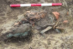 The other “journey” in here, is the fact that objects included with a pre-Christian burial like this are known as grave goods – the items that the deceased would need on their journey into the afterlife. In this case, apart from eating and drinking equipment, the finds included a tiny carved intaglio gem, and an iron lamp holder. Objects that give light are a common feature in many Roman burial groups, suggesting the person may have needed light for their final journey.