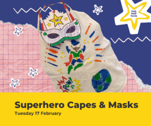 This event is recommended for children aged 5-10. Younger children are welcome but may need some support with making their mask and cape.