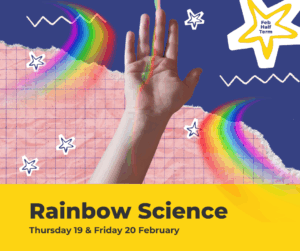 Learn all about the science of colour with our rainbow-themed workshop: make a rainbow in a jar to take home, experiment with how we can split light and how rain clouds are formed and more!